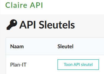Naam voor de API sleutel is Plan-It. Contact naam: IT beheerder van het bedrijf. Contact e-mailadres en telefoon van de IT beheerder. Doel van API sleutel: Statussen ophalen