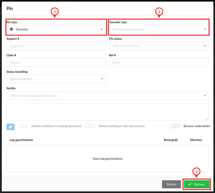 In de garantie pin log geschiedenis is te zien dat de