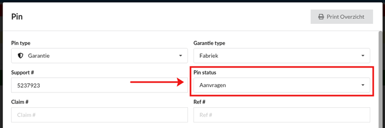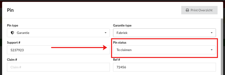 Verander nu de pin status van de gerepareerde garantie