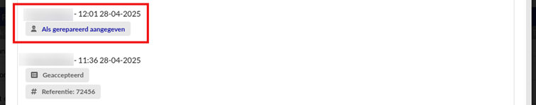 de werkorder is gereed gemeld.