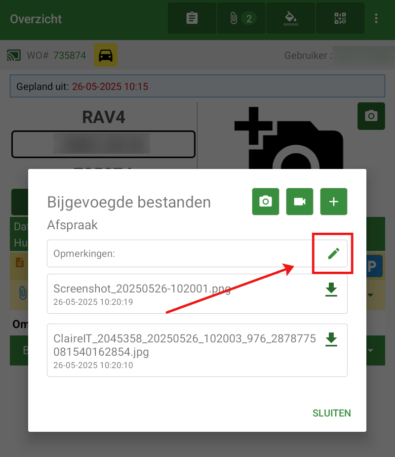 Dankzij deze functie kan een monteur bestanden toevoegen aan een WO als bijlage.