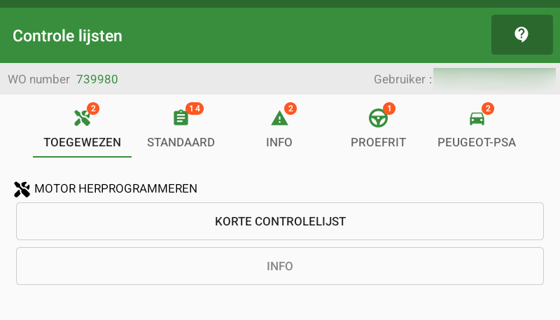 Dit geeft aan op de tablet in welke volgorde de monteur de controlelijsten moet uitvoeren.