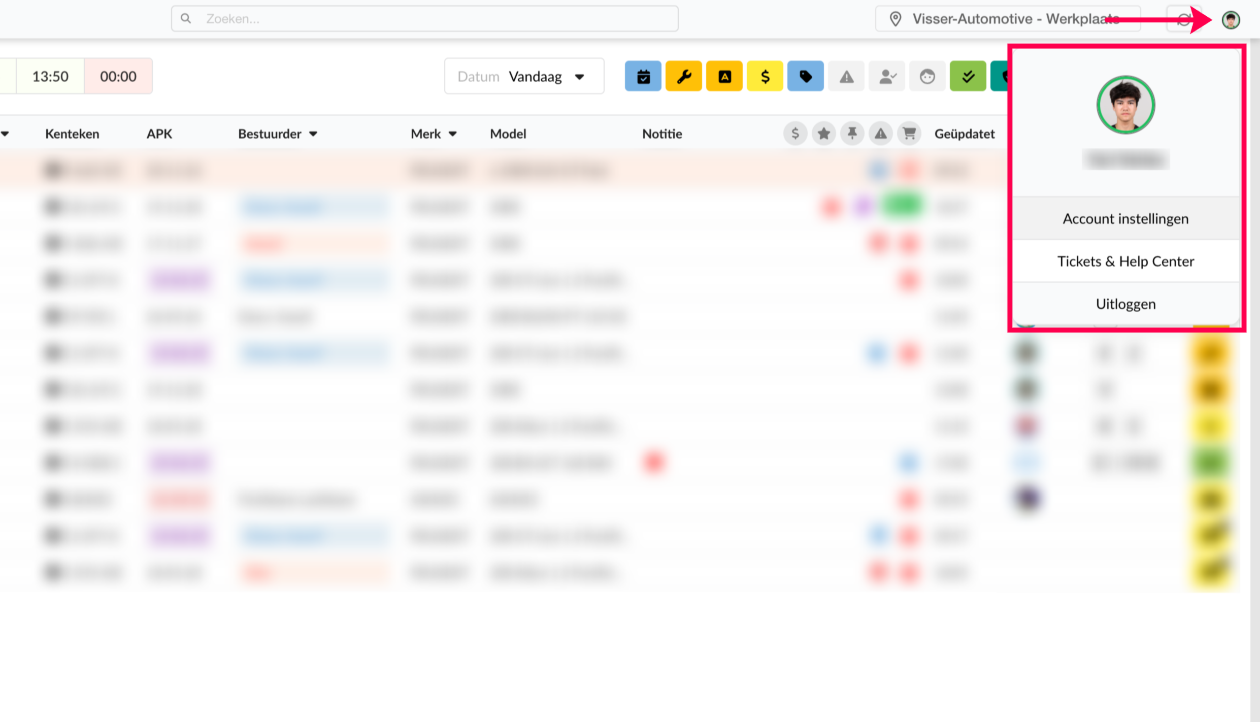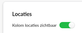 Schakel Kolom locaties zichtbaar in om een extra kolom te zien met de locatie van de werkorder in de afsprakenlijst. Deze kolom is alleen te zien wanneer het filter alle locaties aan staat.