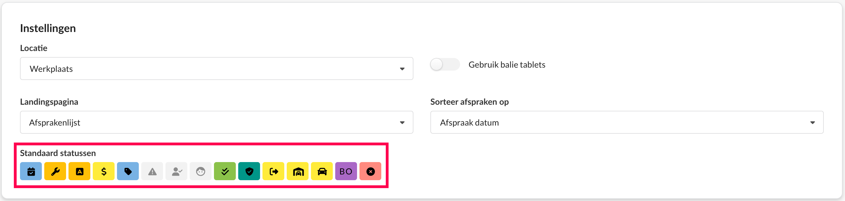 Standaard zijn alle locaties en statussen zichtbaar voordat je deze instellingen aanpast.