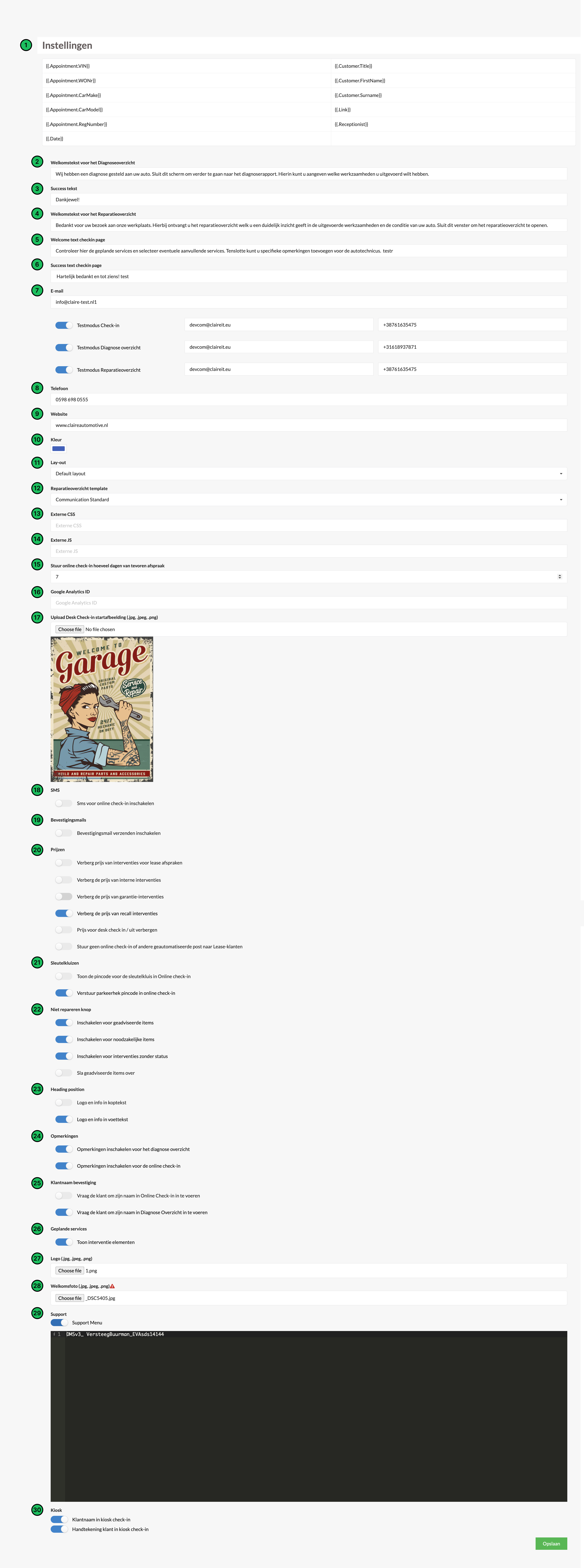 Ontdek alle aanpassingsmogelijkheden of neem contact met ons op via support@claireit.eu om eventuele wijzigingen door te geven.