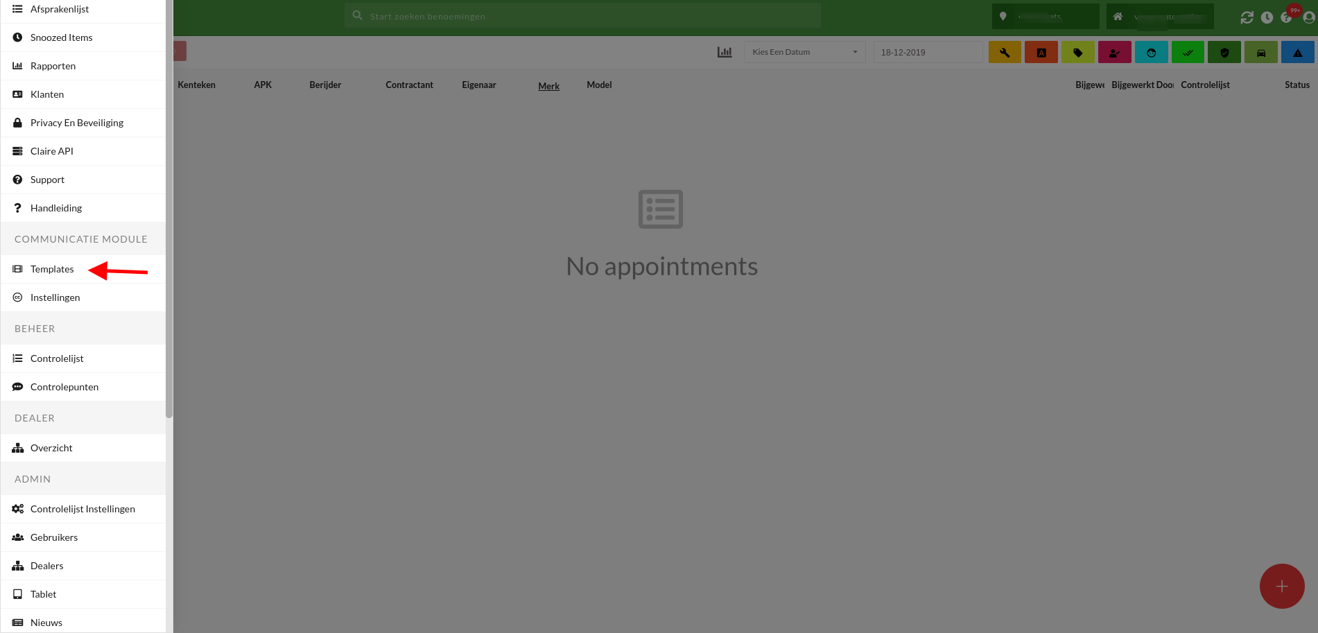 Stap 1: Klik in het hamburgermenu onder het gedeelte klantcommunicatie op Templates.