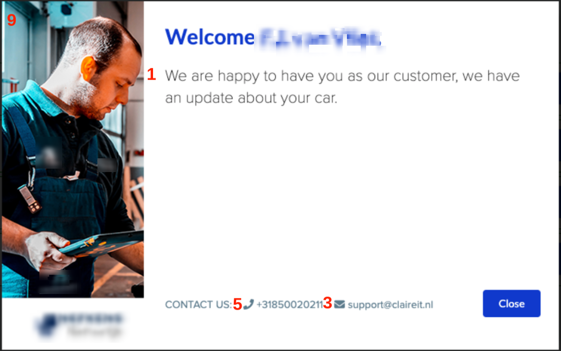 De foto zal getoond worden op het welkomstscherm van de klantcommunicatie (Grootte 197 x 460 pixels, bestand: .jpg .jpeg .png) |
