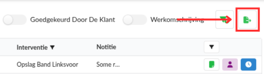 Stap 1: Klik op de export knop om een .ods (Excell) bestand te downloaden met de ingestelde filters. Dit is alleen mogelijk wanneer er 1 locatie is geselecteerd.