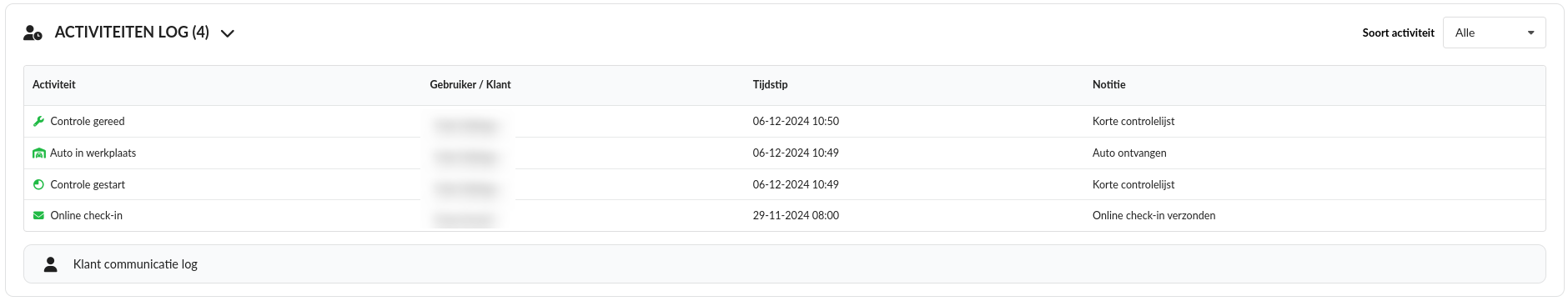 Onderaan de werkorder detailpagina vind je de activiteiten log. Hier wordt bijgehouden welke gebruiker wanneer welke status heeft aangeklikt.