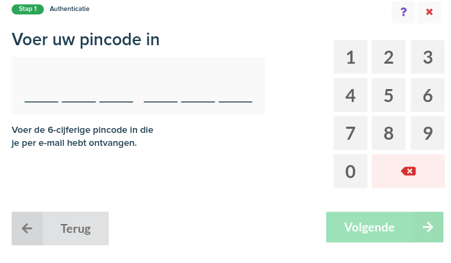 Zodra de klant op Versturen klikt, wordt automatisch een e-mail met een pincode naar dat e-mailadres verzonden.