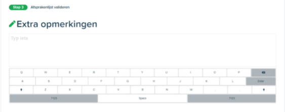 In deze stap kan de gebruiker de informatie over de afspraak valideren en een opmerking toevoegen.