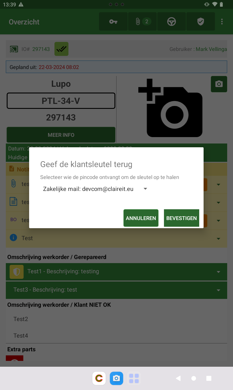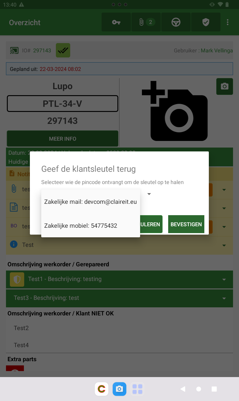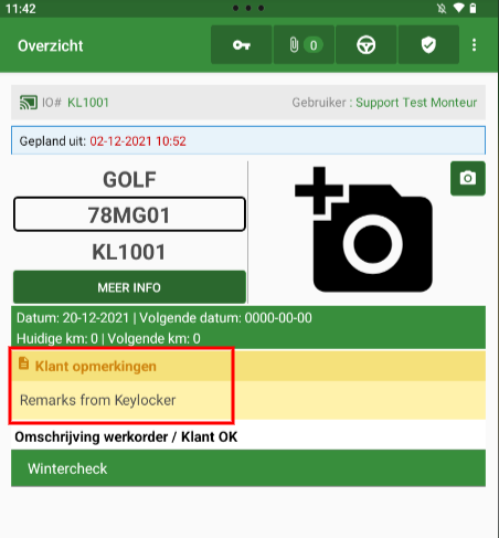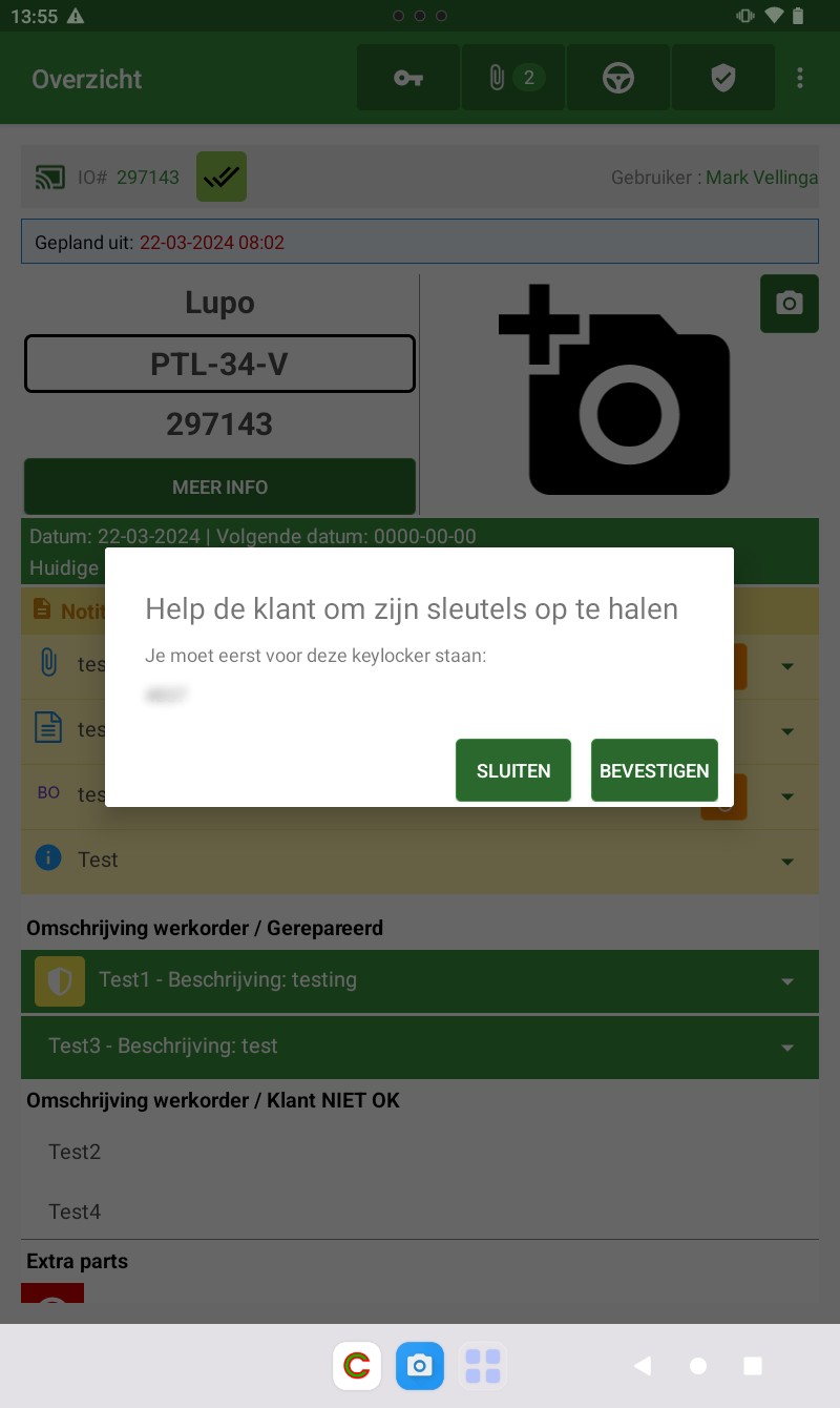 sleutelkluis in te stellen. Op de tablet kan de monteur zien wanneer een sleutel in de kast is achtergelaten door middel van een sleutel icoon.