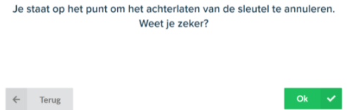 De knop met het sleutelicoon is weer beschikbaar voor de receptionist, zodat de sleutel kan worden opgehaald. Nadat de beveiligingscode is ingevoerd, is het volgende scherm zichtbaar: