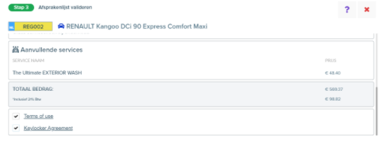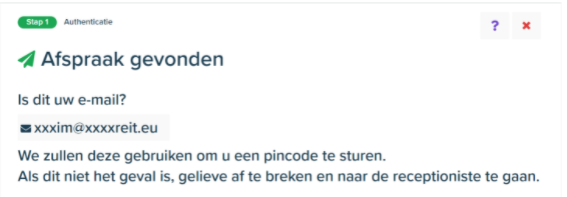 Als het ingevoerde kenteken overeenkomt met een kenteken van een WO, de (afspraak)datum van vandaag is en de chauffeur een privé of zakelijk e-mailadres heeft dat bekend is bij de dealer, verschijnt het volgende scherm: