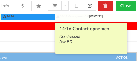 Op de tablet kan de receptionist door middel van een sleutel icoon zien wanneer een sleutel in de kast is achter gelaten.