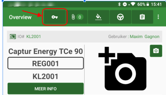 Bij het openen van de WO ziet de monteur een nieuwe knop, gebruik deze om de QR code te scannen en voer de 4-cijferige code in.