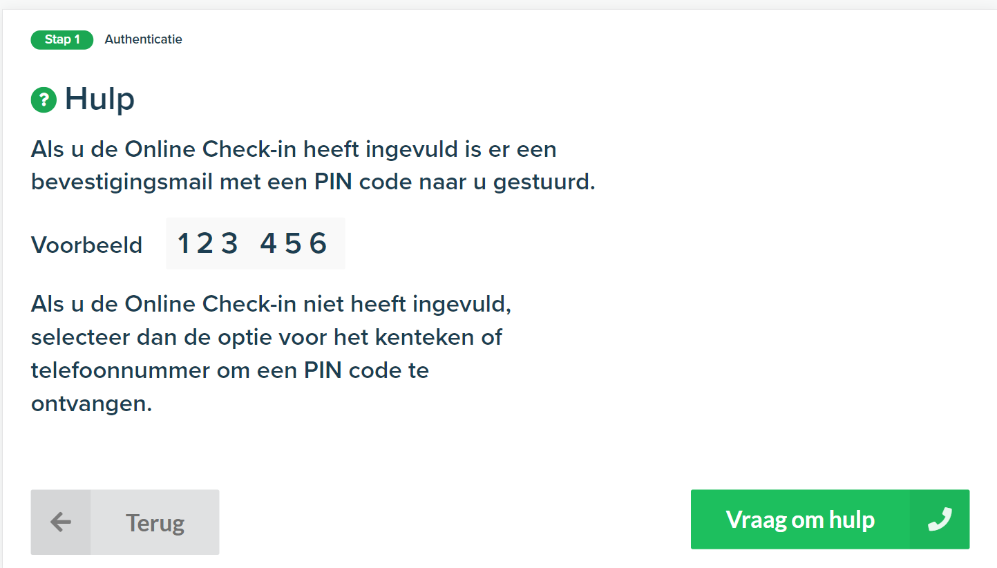 Met deze selectie kunnen uw klanten een pincode ontvangen door eerst hun kenteken op te geven.