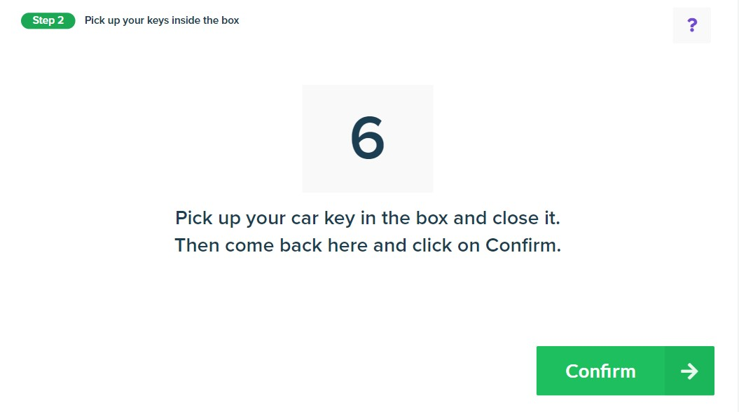 Er wordt nu een kluis geopend, de gebruiker plaatst zijn autosleutel hierin en moet op bevestigen klikken om het proces te voltooien.