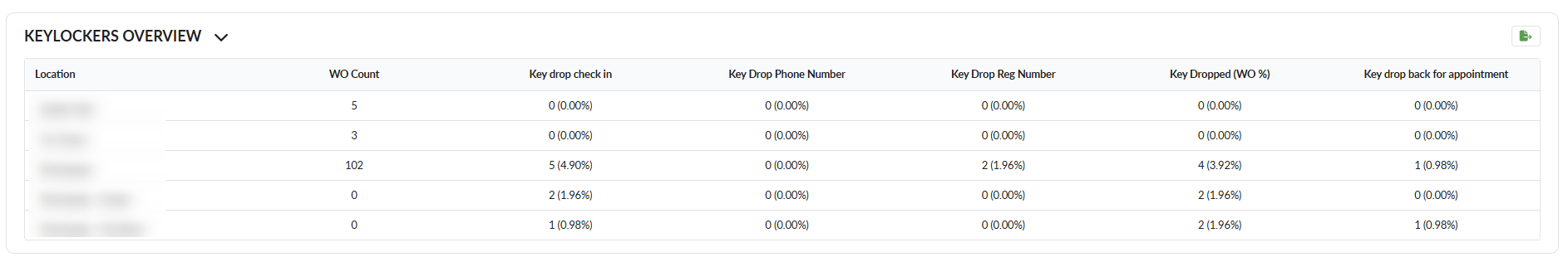 Key Dropped (WO%): Count of appointment with a key dropped and his percentage out of the total count of WO.