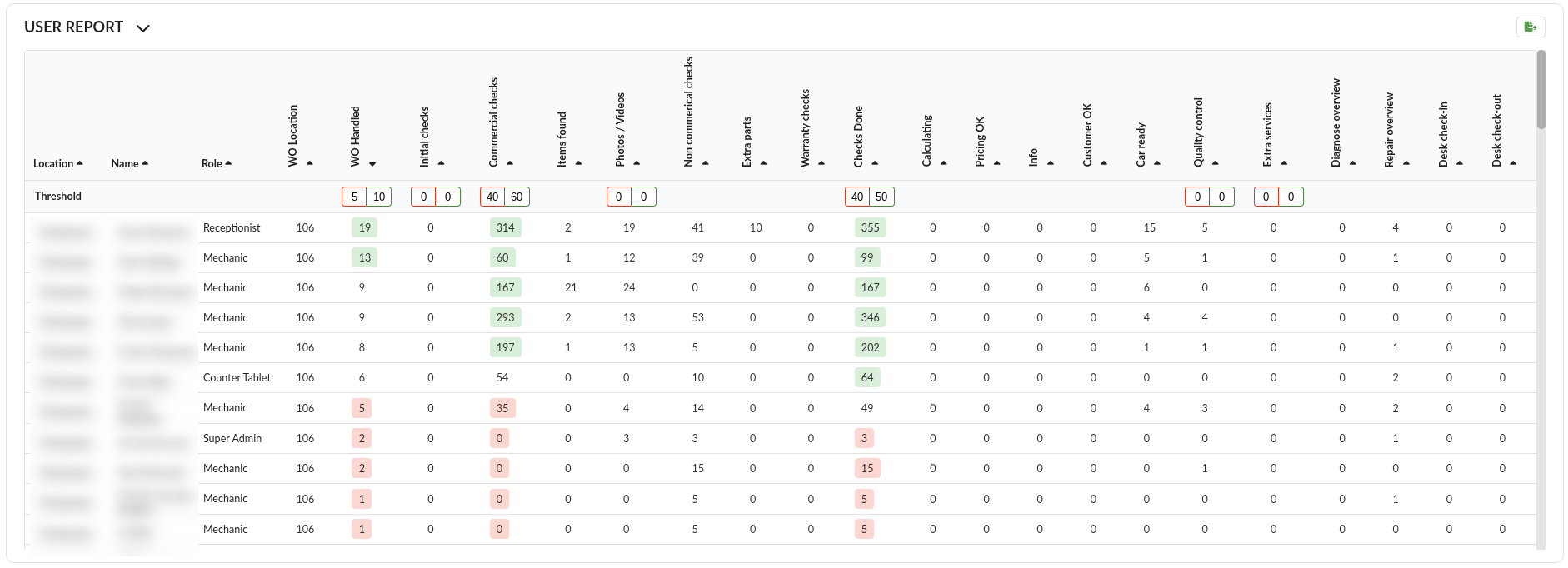 Above some columns you can set the minimum threshold that needs to be archieved. This is only for users with the role Dealer Admin or higher. Receptionist can only view these in read-only.