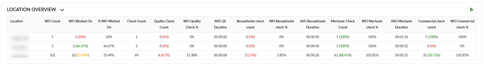 WO Quality Check %: Percentage of WO Worked that contains a quality check.