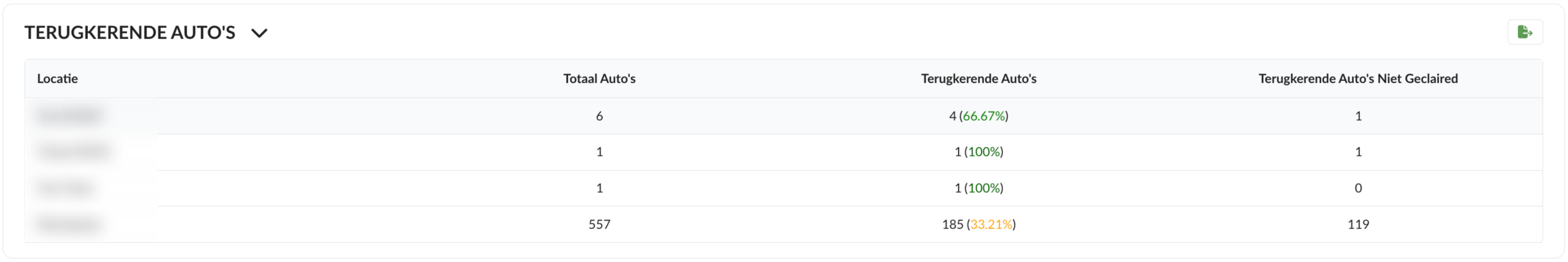 Terugkerende Auto's Niet Geclaired: Aantal auto's die als terugkerend waren gemarkeerd, maar waarbij geen aanvullende controles werden uitgevoerd.