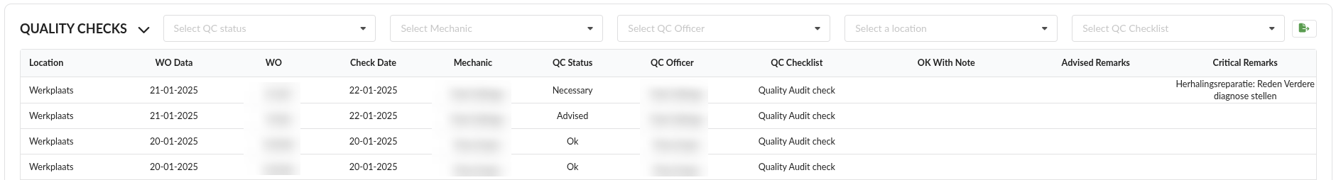 QC Officer: Name of Mechanic or QC Officer that performed Quality Check.