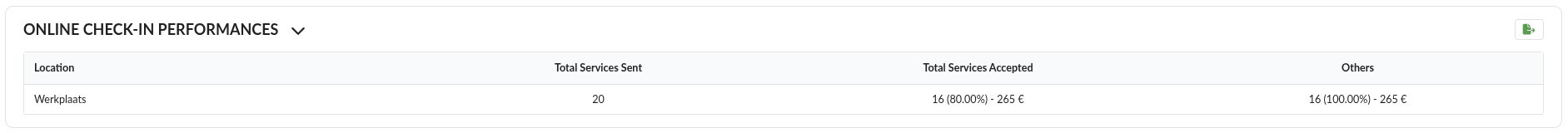 When an extra service has a tag, it will add a seperate column for this extra service with the name of the tag. This will display the amount of time this is accepted and enables you to keep track of the extra service performances.