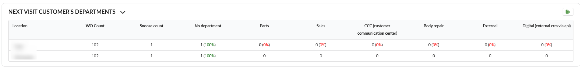 Digital (external crm via api): Count of snooze for this department and his percentage out of the total count for this snooze type.