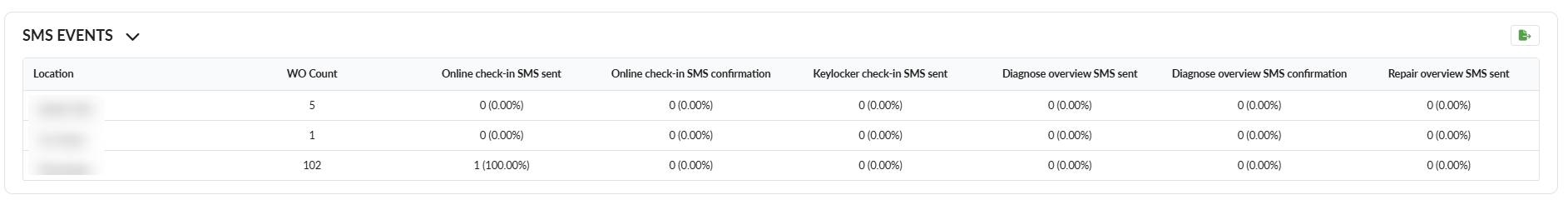 Repair Overview SMS Sent: Count of Repair Overview SMS sent and his percentage out of all SMS sent.