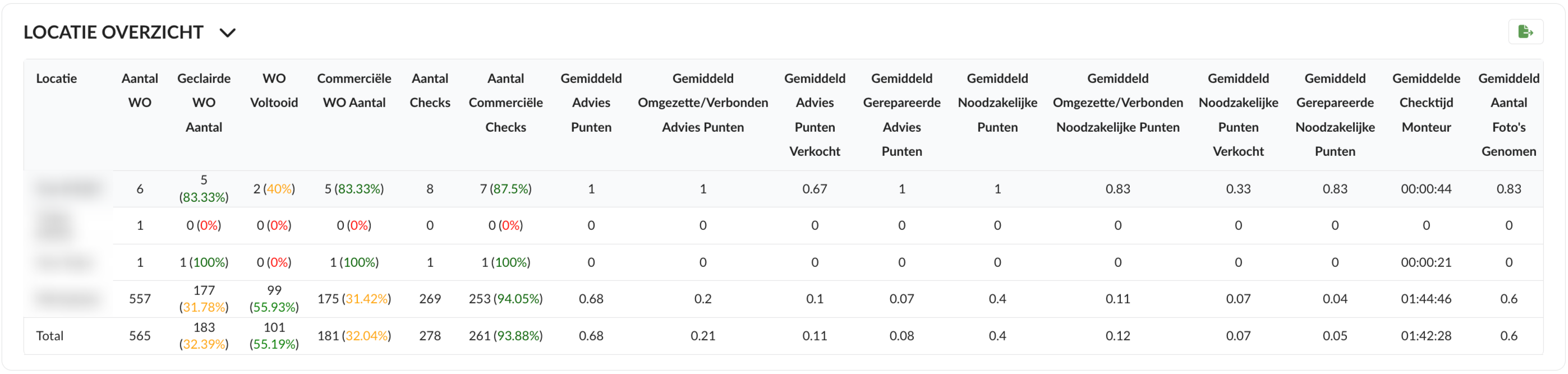 Wat staat er: Gemiddelde verhouding van verkochte noodzakelijke- en adviespunten versus gevonden noodzakelijke- en adviespunten, uitgedrukt in percentages.