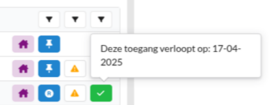 Als de aanvraag is goedgekeurd, veranderd het icoon in een groen vinkje. Wanneer je over het pictogram beweegt verschijnt de vervaldatum van deze goedkeuring en kun je op het WO- en Reg-nummer klikken.