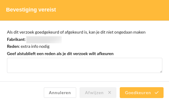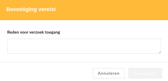 Een pop-up opent waarin je een reden voor de aanvraag moet invoeren.