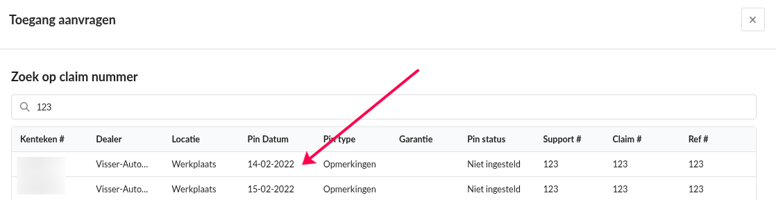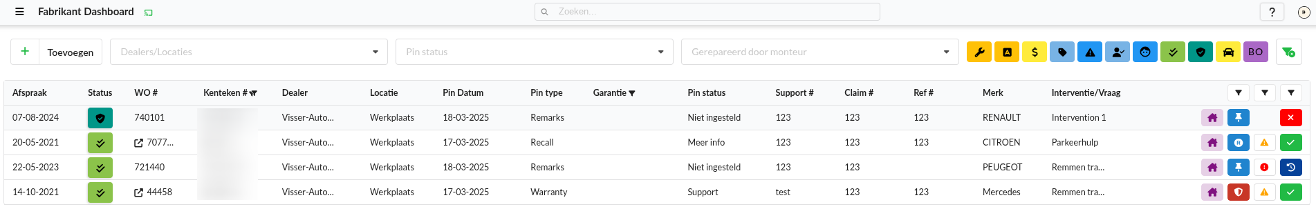De WO worden aangevraagd op basis van het Claim nummer. In het dashboard ziet de receptionist alleen WO waartoe de fabrikant toegang heeft aangevraagd.