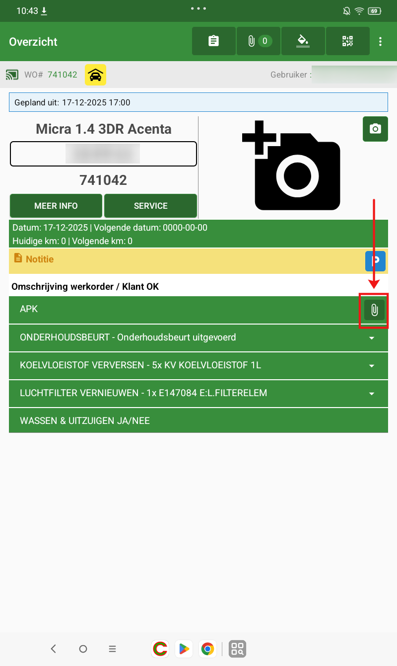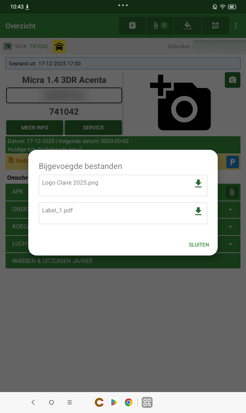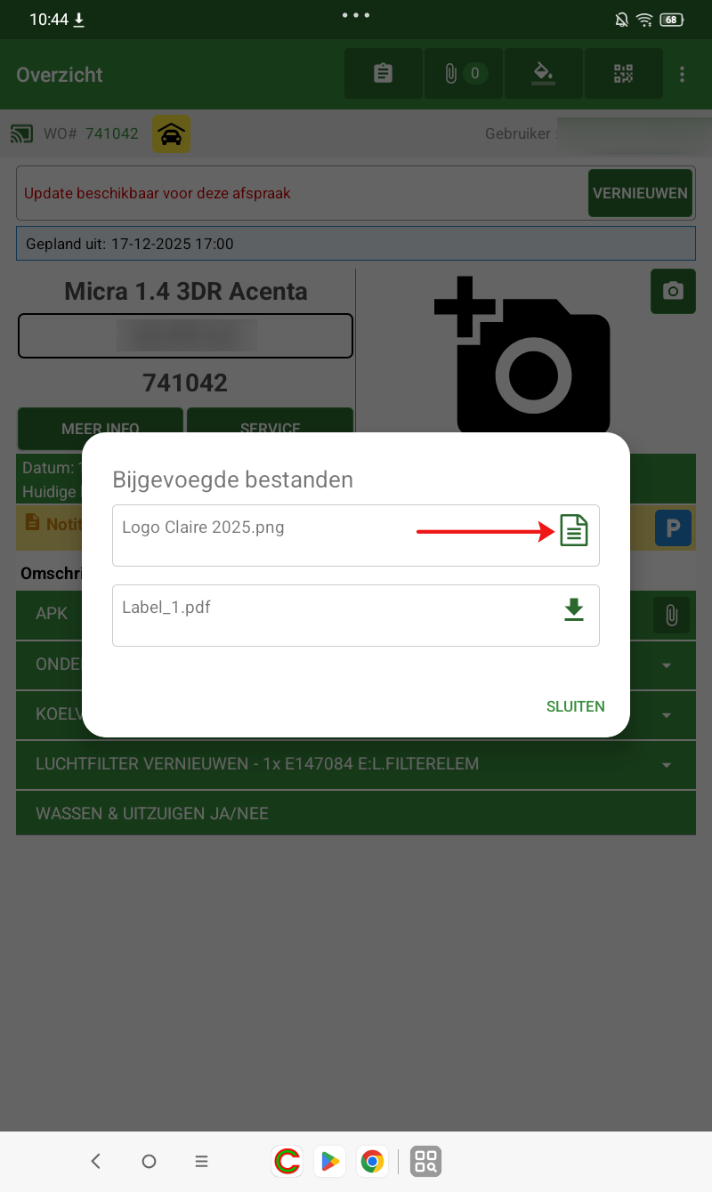 Wanneer een interventie bijlagen bevat, zijn deze direct zichtbaar voor monteurs op de tablet.