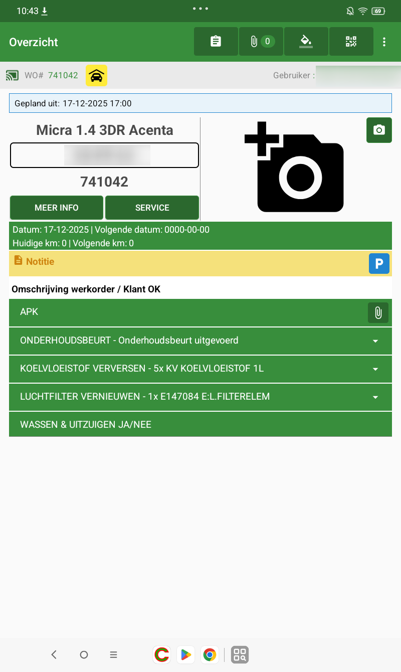 Wanneer de de applicatie op de tablet opent en de interventie selecteert, zie je op het scherm met de details van de interventie.