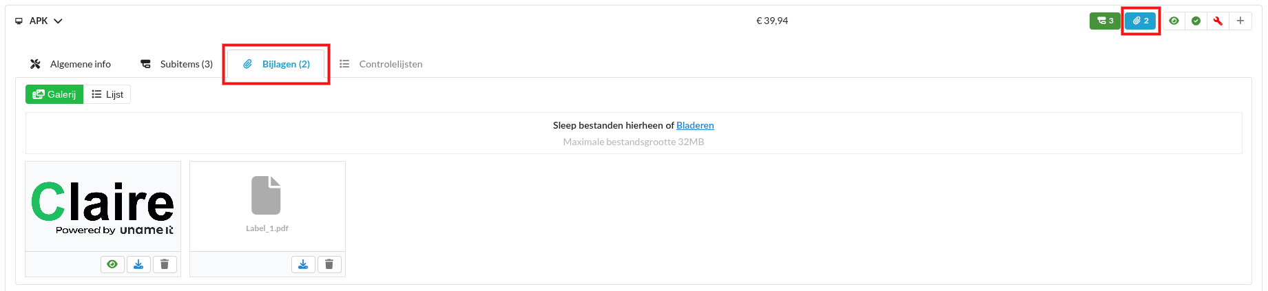 In Claire V8 is het mogelijk om bijlagen toe te voegen aan interventies als desktop gebruiker. Op tablet is het nu ook mogelijk voor de monteur om deze bijlagen te zien.