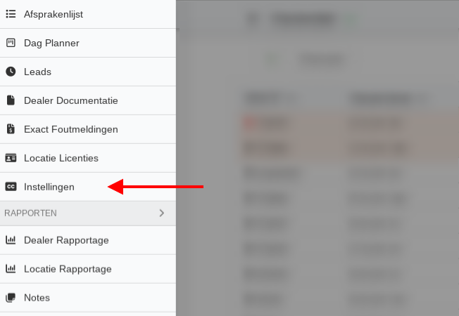 De klantcommunicatie instellingen pagina is te vinden in het hamburgermenu:
