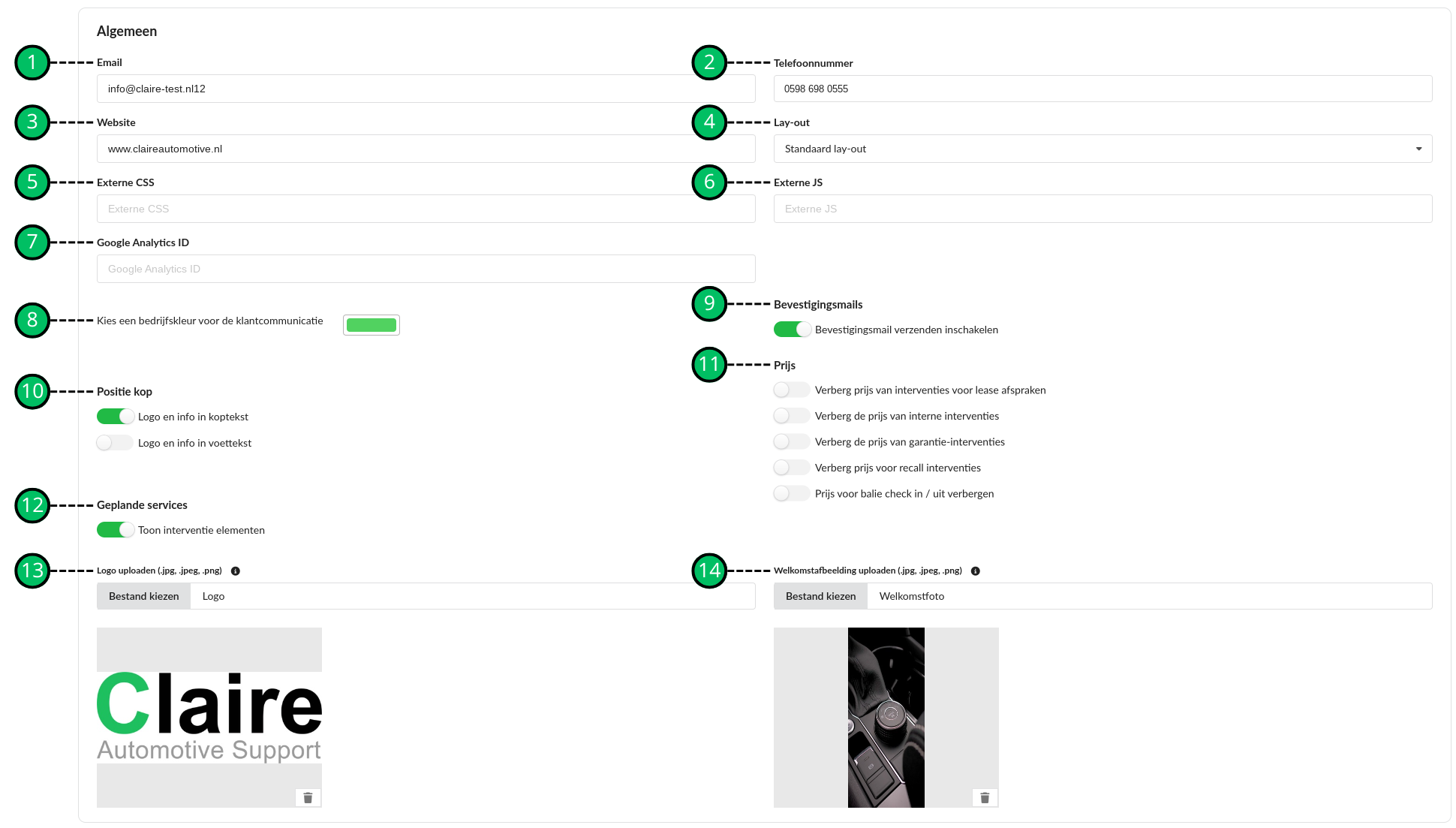 Algemeen telefoonnummer die getoond wordt aan de klanten. |