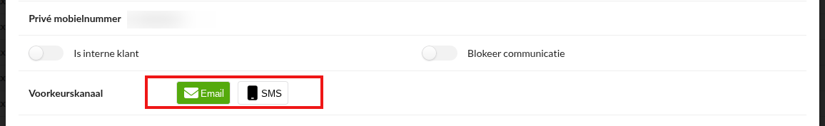 Je kunt het voorkeurskanaal van de klant bekijken en aangeven. Als jouw locatie ervoor heeft gekozen om onze Klantcommunicatie module te gebruiken, wordt dit aangegeven op het klantcommunicatiescherm. Het voorkeurskanaal kan ook door de klant zelf worden geselecteerd bij het online inchecken. De klantcommunicatie wordt dan verstuurd naar de klant per mail of per SMS**.