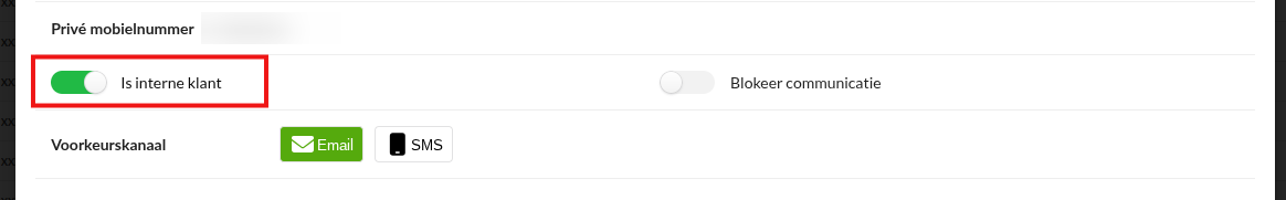 Je kunt een klant markeren als interne klant, zoals aangegeven in de afbeelding hieronder.