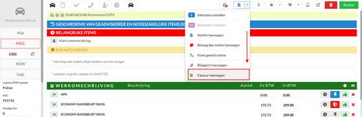 optie: “Factuur toevoegen”: