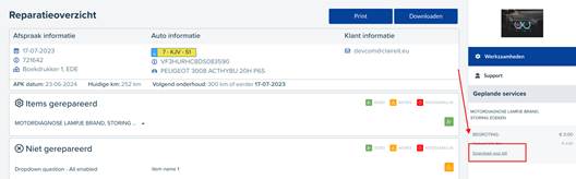 Met deze functie kun je een klantrekening als bijlage toevoegen. Nadat de klantrekening hebt toegevoegd, kun je de rekening naar de klant verzenden via het Reparatieoverzicht. Als de factuur ontvangen is door de klant kan deze gedownload worden. Waar ...