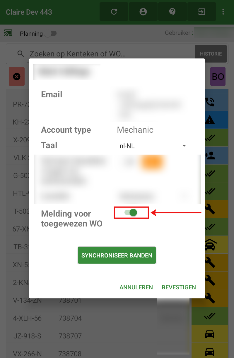 Open de account instellingen op de tablet en activeer de knop bij Melding voor toegewezen WO.