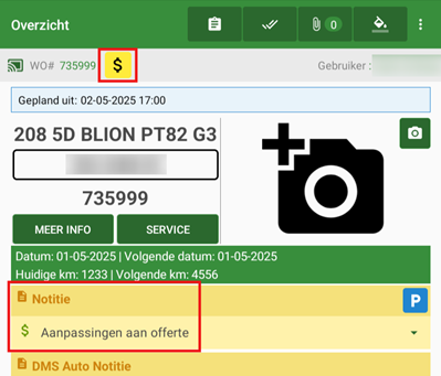 werkorder is gewijzigd naar Offerte maken.