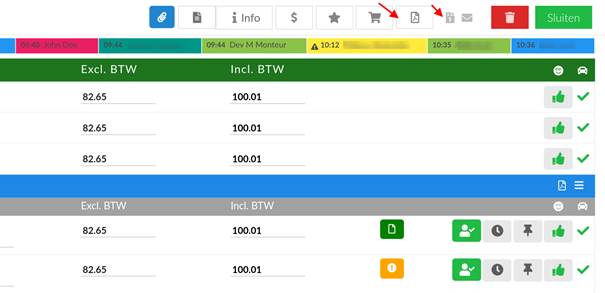 Deze icoontjes geven aan dat er een reparatieoverzicht