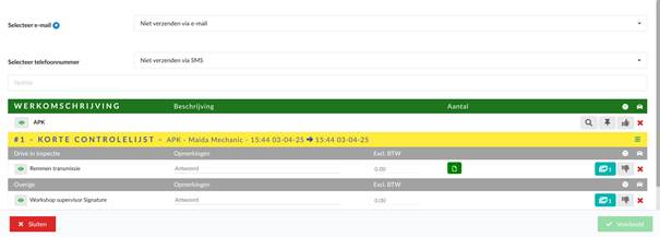 Het reparatieoverzicht wordt niet automatisch verzonden naar